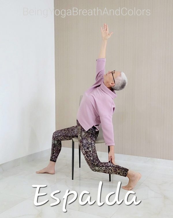 Trabajo de yoga en silla en línea para personas mayores de 75 años, que ofrece ayuda alternativa a los problemas comunes relacionados con la espalda: dolor de espalda y hombros, debilidad muscular, desequilibrio, desalineación postural y rigidez.