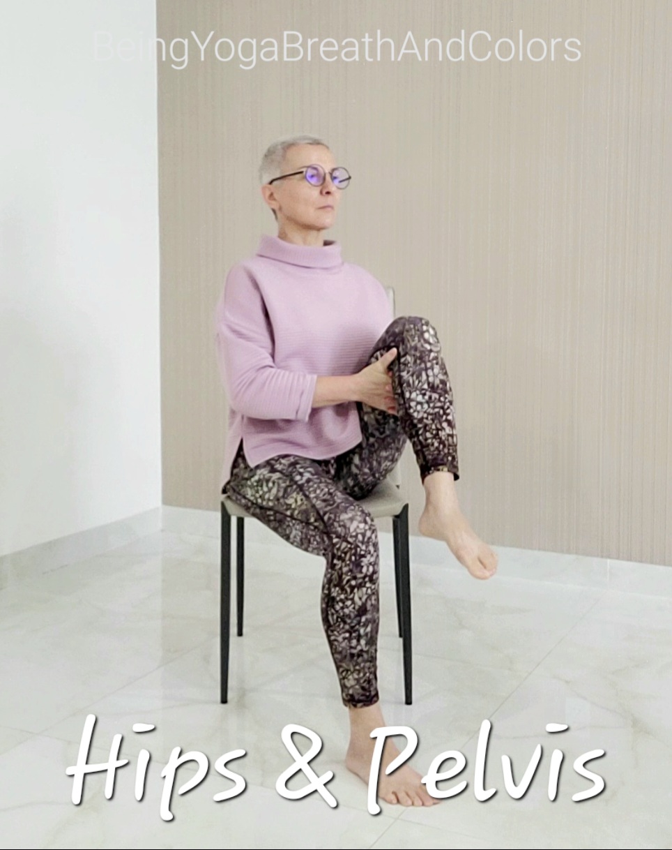Live one-on-one online chair yoga with special focus on Hips and Pelvis. The fee is for an hour of class time.